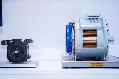 永磁同步牵引电机以“绿色高效、小型轻量、安全可靠、智能智慧”为目标,采用简统化、模块化、系列化设计理念和全封闭自通风冷却结构,应用多项新技术、新工艺、新材料,大大降低全寿命周期维护成本,具有高效、低噪、轻量化等特点,与传统异步牵引电机相比,功率提升1.2倍。